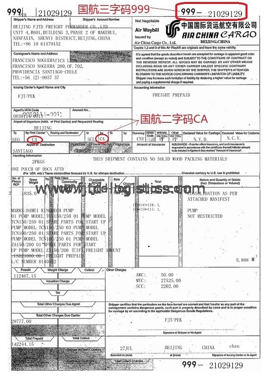制單費(AWC):AW是Airway Bill的簡稱,C表示Carrier,意味著這是承運人收取的制單費;