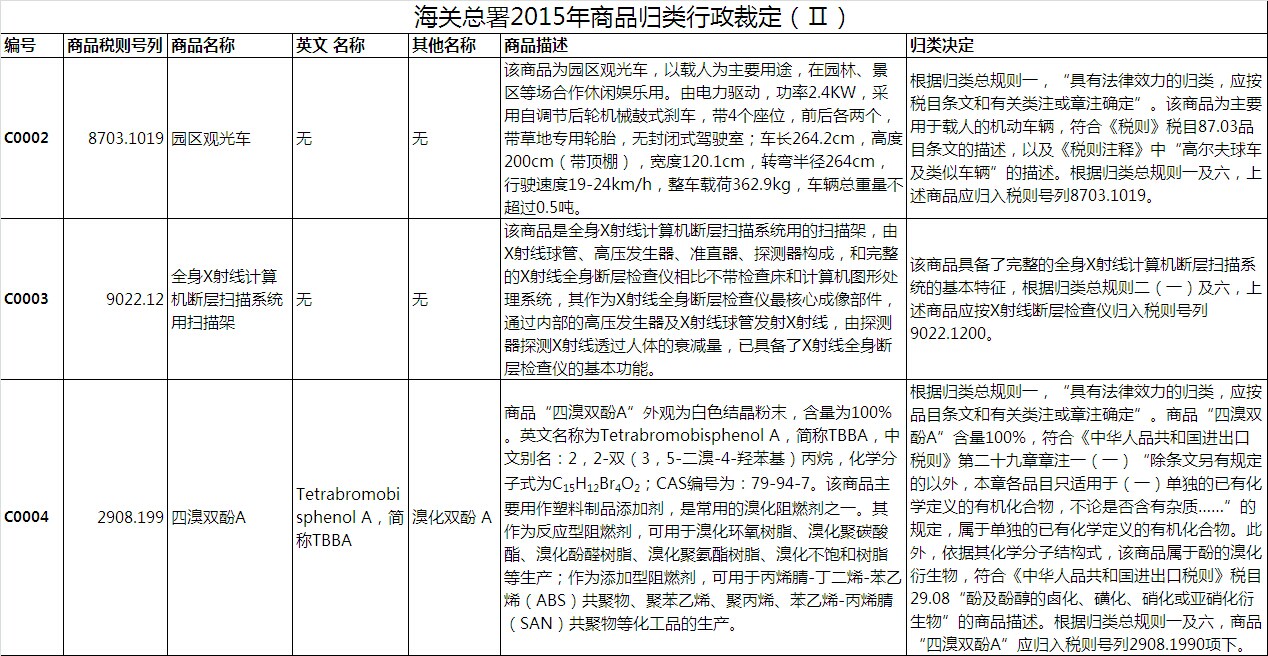 點擊下載:海關總署2015年商品歸類行政裁定(Ⅱ)