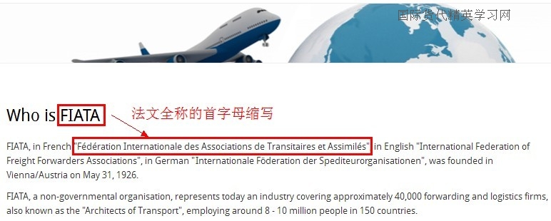 國際貨運(yùn)代理協(xié)會聯(lián)合會的英文全稱為International Federation of Freight Forwarders Associations;法文全稱為Fédération Internationale des Associations de Transitaires et Assimilés——簡稱FIATA——FIATA是這個組織的法文全稱的首字母縮寫。