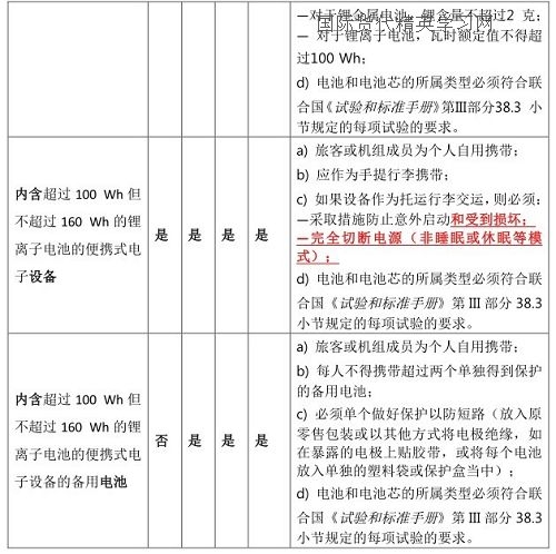 表1 便攜式電子設(shè)備及備用電池規(guī)定