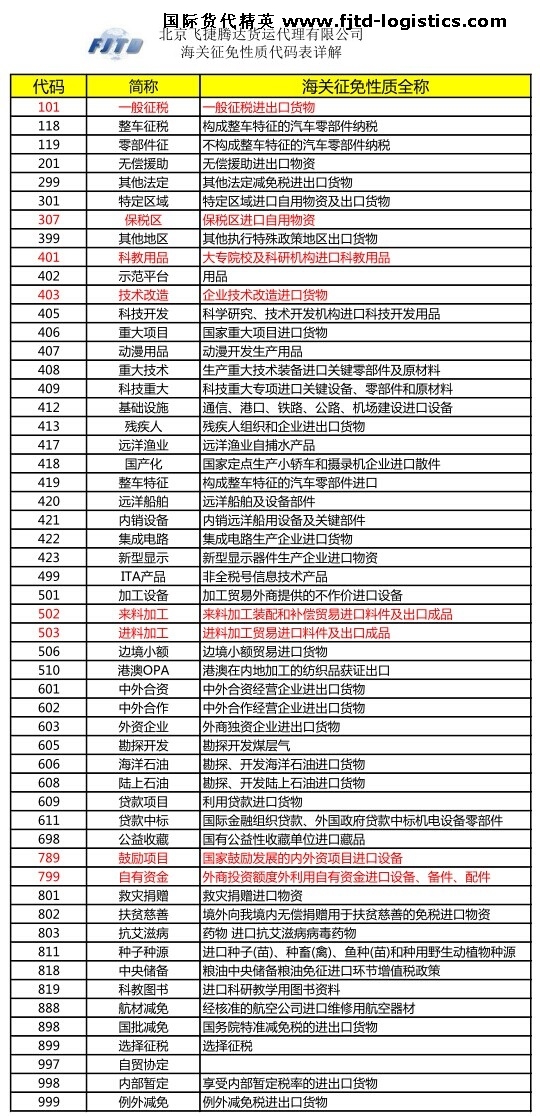 海關(guān)征免性質(zhì)代碼表詳解(全)