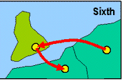 本國飛機可以用兩條航線的名義,接載A國和B國乘客及貨郵往返,但途中必須經(jīng)過本國——以本國為“橋梁”載運A國乘客及貨郵到B國,和/或以本國為“橋梁”載運B國乘客及貨郵到A國。這就是第六航權(quán):橋梁權(quán)。