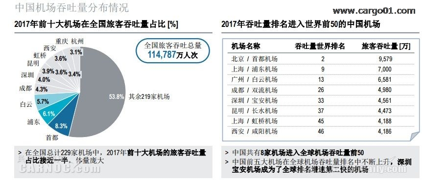 我們正式公布了229個機場的數(shù)據(jù),在這個里面我們會看到頭部的集中還是非常明顯的。以首都機場為代表,我們在PPT的左邊把前10大機場畫出來。他們的總量其實占了整個中國機場吞吐量將近半壁江山。