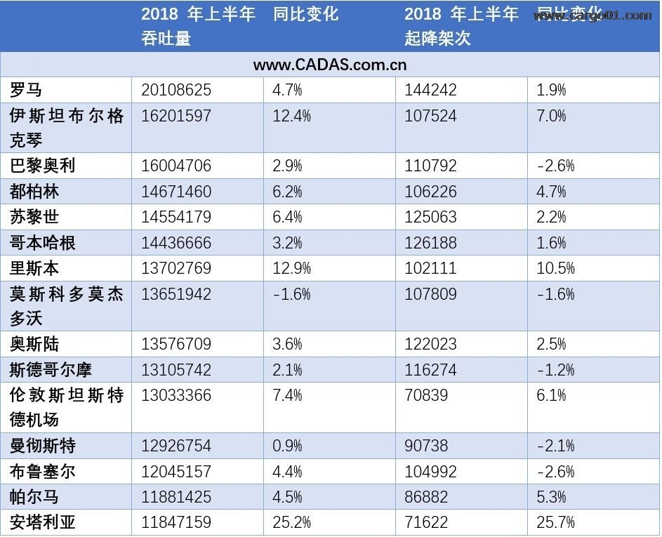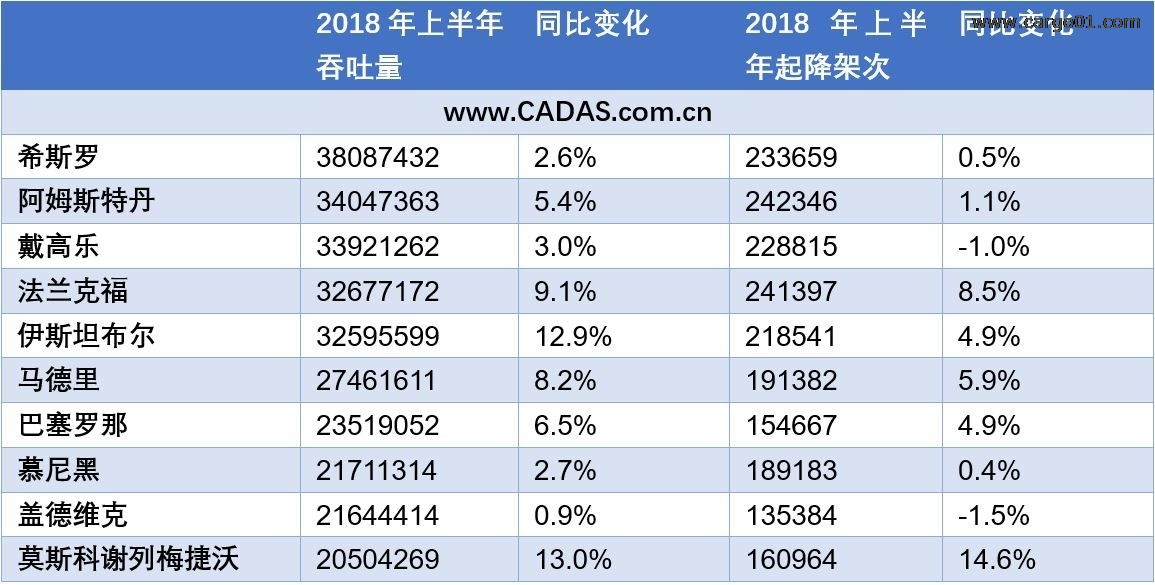 從歐洲機場上半年整體發(fā)展觀察,吞吐量的變化與所在國家經(jīng)濟發(fā)展形勢、航空政策、航空公司發(fā)展關(guān)系密切。歐洲主要機場容量不足和空中交通管理效率低下帶來的影響變得日益嚴重,航班延誤問題在2018年夏季明顯加劇,這樣的影響或?qū)㈤L期持續(xù)。