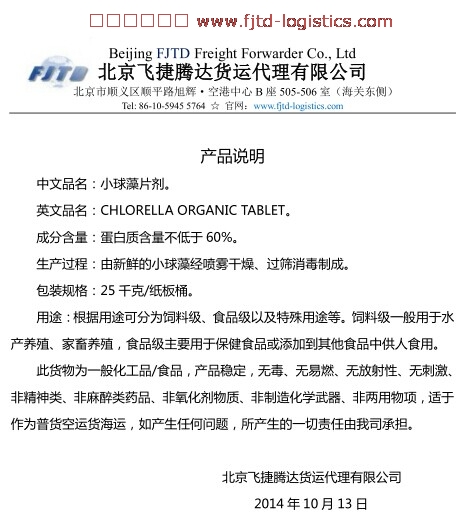您現(xiàn)在的位置:首頁 >> 物流學(xué)堂 >> 貨代百科>>小球藻片劑產(chǎn)品說明(FJTD報關(guān)用)