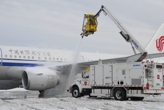 飛機(jī)除冰特種作業(yè)車:在寒冷的北方冬季,覆蓋在飛機(jī)表面的積雪很容易結(jié)冰,在飛機(jī)起飛前,必須進(jìn)行除冰的工作。從事這種工作的師傅被稱為“除冰師”。