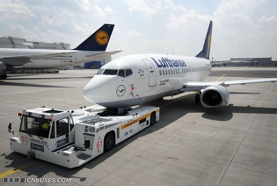 飛機(jī)牽引車:包括有桿牽引車和無桿牽引車,有桿牽引車就是有一根桿子與飛機(jī)相連,無桿牽引車是直接將飛機(jī)前輪抱起。飛機(jī)牽引車也叫飛機(jī)拖車,是在飛機(jī)沒法自行滑出時(shí),用牽引車將飛機(jī)拖出??康奈恢玫交械阑蚺艿缴?。