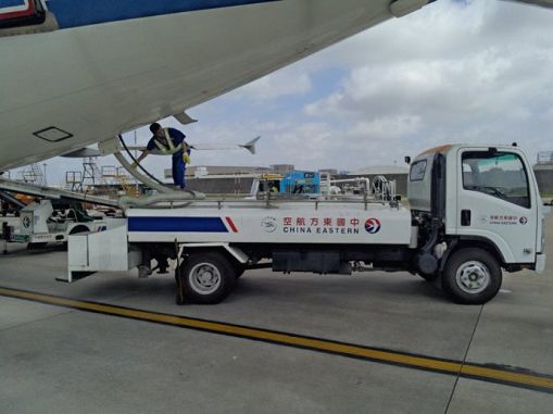 飛機(jī)污水車:專門接收飛機(jī)衛(wèi)生間污水的機(jī)場地面特種車輛。