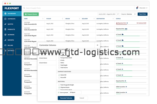 Flexport致力于提供貨物運(yùn)輸?shù)脑诰€預(yù)訂和跟蹤服務(wù),讓客戶可以像訂飛機(jī)票一樣簡單的在線預(yù)訂貨船、卡車、貨運(yùn)飛機(jī),同時(shí)將極其復(fù)雜的國際貨運(yùn)代運(yùn)環(huán)節(jié)全部打通串在一起,實(shí)現(xiàn)全程電子化、可視化。