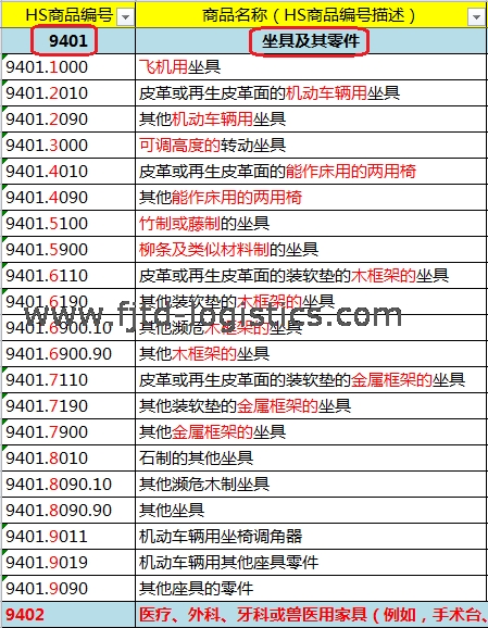 9401:坐具及其零件