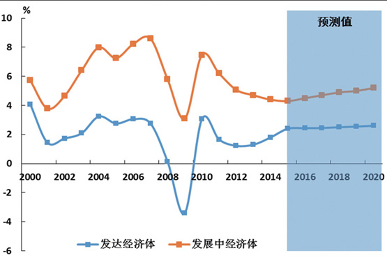 圖2 發(fā)達經(jīng)濟體與發(fā)展中經(jīng)濟體增速