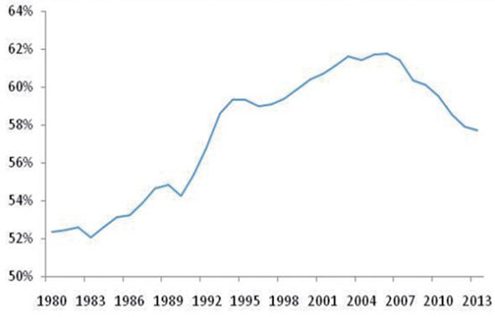 圖6 沿海地區(qū)(含北京)占全國GDP比重