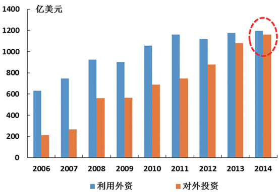 圖8 我國年度利用外資與對外投資發(fā)展對比