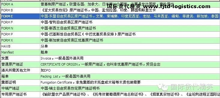 2)根據(jù)我國與不同國家簽訂的雙邊或多變貿(mào)易協(xié)議,原產(chǎn)地證分為很多格式,比如針對發(fā)達國家的FORM A, 針對孟加拉國、印度、韓國、斯里蘭卡的FORM B,針對東盟國家的FORM E, 針對智利的FORM F,針對新西蘭的FORM N,針對新加坡的FORM X等。