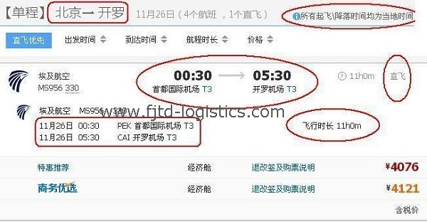 這里05:30指的是開羅當(dāng)?shù)貢r(shí)間,不是北京時(shí)間。開羅和北京所處時(shí)區(qū)不同,根據(jù)國際時(shí)差,開羅時(shí)間比北京時(shí)間晚6個(gè)小時(shí)。在北京起飛時(shí)間00:30,到達(dá)開羅的時(shí)間05:30。表面上看,好像北京-開羅只飛了5個(gè)小時(shí)。其實(shí),不能這么計(jì)算飛行時(shí)間。因?yàn)?0:30是北京時(shí)間,05:30是開羅時(shí)間,開羅時(shí)間又比北京時(shí)間晚6個(gè)小時(shí),因此實(shí)際飛行時(shí)間應(yīng)為:(05:30-00:30)+6(時(shí)差)=11小時(shí)。