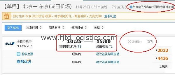 ETD Beijing 10:25(北京時(shí)間);ETA Tokyo 13:00(東京時(shí)間);表面上看,北京-東京飛行時(shí)間=15點(diǎn)-10點(diǎn)25=4小時(shí)35分。因?yàn)闁|京時(shí)間比北京時(shí)間早一個(gè)小時(shí),實(shí)際飛行時(shí)間應(yīng)為:(15點(diǎn)-10點(diǎn)25)-1=3小時(shí)35分。