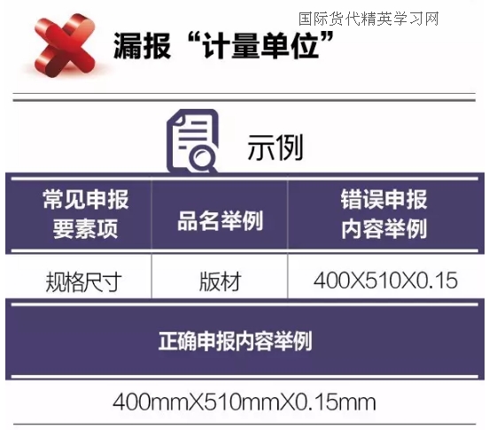 如:規(guī)格尺寸——板材;錯(cuò)誤申報(bào):400x510x0.15;正確申報(bào):400x510x0.15mm。
