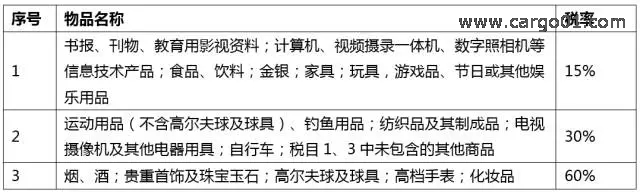 附件:《中華人民共和國進境物品進口稅率表》(只限于進口物品,不包括貨物)
