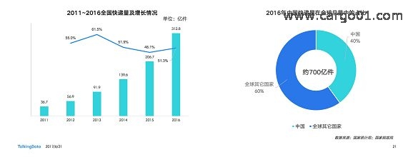 3)快遞行業(yè)持續(xù)高速增長,業(yè)務(wù)量占全球總量的四成