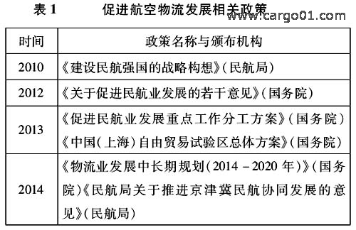 近年來,國(guó)務(wù)院、民航局和各地政府不斷出臺(tái)鼓勵(lì)航空物流發(fā)展的政策,極大促進(jìn)了中國(guó)航空物流業(yè)的發(fā)展(見表1)。