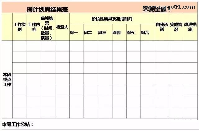 我們具體來分享如何來做我們崗位的周計劃?接下來通過一張表格: